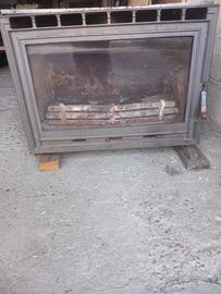 camino a legna con sportello in vetro