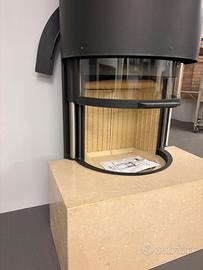 Camino a legna con vetro curvo a 180° a saliscendi.