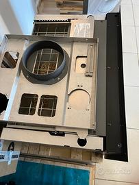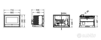 facilmente ispezionabile con ampio vetro ceramico serigrafato, vano cenere, maniglia removibile, valvola di limitazione della pressione. Scarico fumi con innesto a baionetta con dispositivo di sicurezza meccanico ed elettrico per sbloccare l'inserto ed effettuare il carico di pellet.
