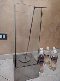 Caminetto al bioetanolo che coniuga estetica scultorea e performance sicura. -In omaggio 5 litri di Bioetanolo -La struttura in acciaio dialoga con quattro pannelli di vetro temperato, creando un volume minimale che protegge e valorizza la fiamma. L’acciaio garantisce resistenza meccanica, mentre il vetro, trattato per sopportare temperature fino a 400 °C, assicura una visione limpida del fuoco e preserva la sicurezza dell’ambiente. Il bruciatore in acciaio inox da 0,7 L sviluppa 1,5 kW/h e assicura una fiamma stabile fino a 1,5 ore con bioetanolo, combustibile ecologico che non produce fumo né odori. L’assenza di canna fumaria semplifica l’installazione e libera la creatività progettuale: basta una superficie piana per accendere l’atmosfera. L’accessorio di spegnimento incluso consente di dosare il fuoco con gesto rapido e sicuro. Caratteristiche tecniche: Dimensioni prodotto: 25 x 25 x 65 cm (lunghezza, larghezza, altezza) Struttura in acciaio e vetro temperato protettivo Bruciatore in acciaio inox da 0,7 L Autonomia fiamma fino a 1,5/2 ore Potenza 1,5 kW/h Accessorio incluso per spegnimento sicuro Prodotto certificato TUV Combustibile ecologico non incluso Antiodore Funzionante senza canna fumaria Resistente al calore fino a 400 °C Non produce ceneri