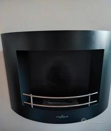 camino da parete a bioetanolo in acciaio nero e argento, usato pochissimo