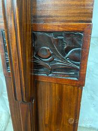 Imponente camino in legno con alzata misura 205x40 ed è alto 145 con l’alzata in altezza complessiva arriva a 220cm