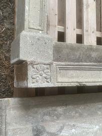 bellissimo camino in pietra con decoro floreale sulle colonne.
