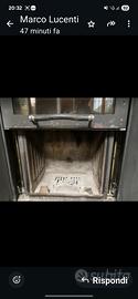 camino legna vetro piatto interno in ghisa con bocchette di uscita aria calda , la porta si apre in salita esterno in marmo. usato solo una stagione vendo per poco utilizzo