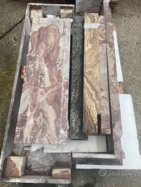 Camino in marmo rosso, già smontato, completo di parte interna in pietra scura bocciardata. Prezzo trattabile. No spedizione, ritiro a Milano.