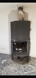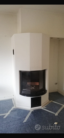 Vendo camino moderno a legna con vetro chiuso, struttura in metallo, ideale per soggiorno o open space.