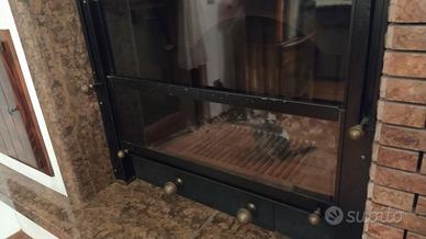Chiusura bracere con due vetri scorrevoli verso l'alto (pomelli in ottone)