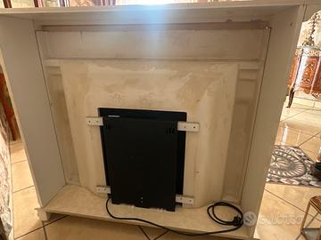Camino beige con dettagli in oro e rivestito di Swarovski; il camino è completamente funzionante ed è munito di funzione riscaldamento con 2 potenze; contiene il telecomando.