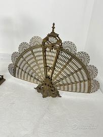 Vendo per il camino parascintille a coda di pavone in ottone antico ,anni '70 Il parascintille a forma di ventaglio può essere aperto per proteggere dalle scintille o lasciato come splendido elemento di decoro interno.