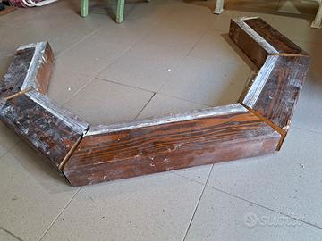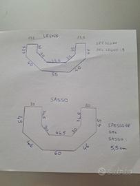 Parti esterne del camino pentagonale che ho smontato: mensola in legno, base in sasso serizzo e i ferri di sostegno. Avrei anche il cassettino per la cenere, la piastra in ghisa e la griglia davanti paravetro, in vendita a parte.