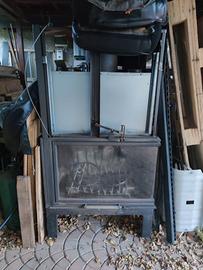 Largo Cm 85 Profondo cm 50 Altezza totale cm 160 Vetro frontale e destro Camino usato con griglia bracere ormai consumata, qualche segno di ruggine, Per altre info contattatemi