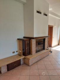 Nella vendita sono compresi il marmo con penisola, l'armadietto in legno ( copri motore), lo sportello sotto penisola, la cornice e il ripiano in legno, le bocchette in alluminio per circolazione dell'aria e circa 7 m di canna fumaria in acciaio inox da 300 mm. Mattoni e cartongesso non si salvano perché rivestimento fatto in opera a mano.