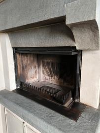 venduto compreso della struttura in pietra serena scalpellata a mano da artigiani e realizzata su misura del camino stesso.