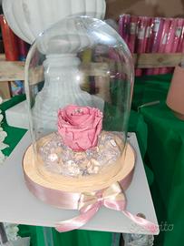 Vendo elegante campana in vetro contenente una rosa vera stabilizzata, impreziosita al centro da uno swaroskino brillante.