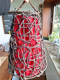 Campana rattan con rivestimento removibile colore rosso, sia per lampadario che per piantane