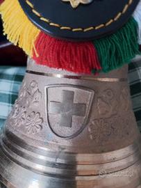 Campana Svizzera in ottone e collare svizzero con fibbia ottone, per mucche peso 1,5 kg campana cm 12 circonferenza 13 lunghezza collare cm 55
