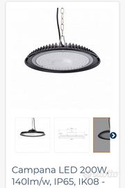 Vendo per trasferimento attività, 15 campane led come nuove 200watt ,27000lm, luce bianca adatte per attività commerciali, officine, capannoni ecc.