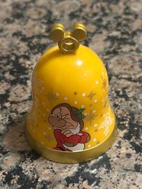 Campanella decorativa con Brontolo, uno dei sette nani Disney. Presenta un design a forma di campana con dettagli festivi.