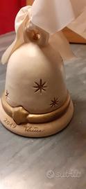 campanella ceramica Thun, con cerbiatto e fiocco organza, pendaglio funzionante e sonoro.