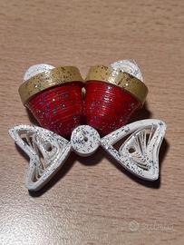 Addobbo natalizio a forma di campana, realizzato interamente a mano con la tecnica del quilling e decorato con glitter argentato. Perfetto come decorazione per l’albero di Natale o come piccolo dettaglio creativo da regalare. Materiali e lavorazione: -Carta -Colla vinilica e acqua, applicate in più fasi per creare una leggera vernice protettiva che aumenta la resistenza del prodotto -Glitter argentato -filo in juta Dimensioni: -Larghezza: circa 5 cm -Altezza: circa 4 cm -Spessore: da 0,5 a 2 cm Contattami prima dell’acquisto per concordare tempi di realizzazione e quantità .