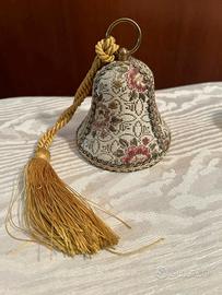 Campanella rivestita in tessuto gobelin con carillon funzionante, anni ‘70, perfettamente tenuta