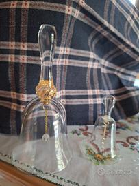 due campanelle in vetro una alta cm.17 con inserto dorato, una cm.9