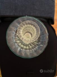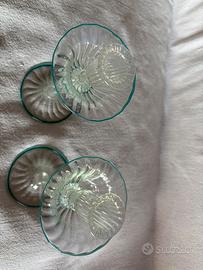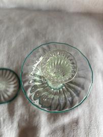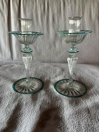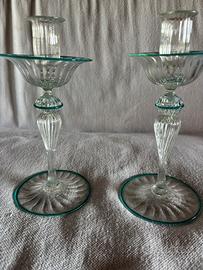 2 candelabri vintage da tavolo lavorati con bordino Celeste,, vetro leggero. Nessuna spaccatura, ottimo stato