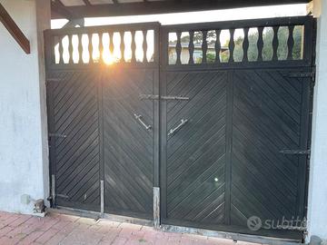 Vendo 2 cancelli in legno da restaurare non marcio , molto belli con chiavistello in ferro battuto ogni anta misura 157 cm di larghezza X 240cm di larghezza ogni anta invece il cancelletto 100cm di larghezza per x210 altezza smontaggio a carico dell’acquirente prezzo riferito ai 2 cancelli