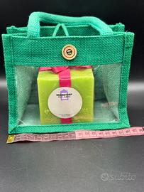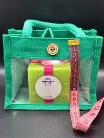 Bustina in juta con manici e finestra trasparente, ideale per contenere una candela.