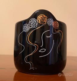 Candela in vasetto Volto di donna in ceramica con dettagli bianchi e oro senza profumazione. Misure: Ø 7 cm x 7 H Durata: 16 h