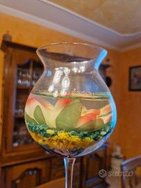 Vedo bellissima candela decorativa con calice in vetro