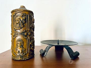 Insieme alla candela è incluso un portacandela in ferro battuto alto 5 cm, che garantisce stabilità e aggiunge eleganza e potrà essere riutilizzato con altre candele.
