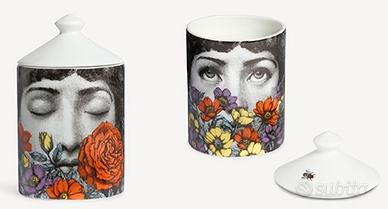 SE POI - Candela profumata FORNASETTI. Decoro tra i fiori - Fragranza giardino segreto, con le sue fresche note verdi. Materiale: porcellana, cera vegetale. Dimensioni: 15 cm altezza × 9 cm lunghezza x 7,5 cm profondità. Peso 310 g - 63 ore di combustione. Nuova con scatola e ancora sigillata, prezzo di listino €250.