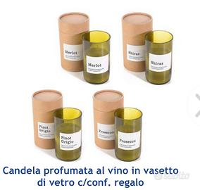Candela realizzata dentro a mezza bottiglia di vino al profumo di vino, - shiraz - prosecco - merlot - pinot grigio