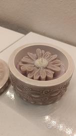 candela in cera di soia in contenitore in polvere di ceramica