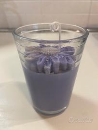Una dolce margherita lilla impreziosita da glitter viola in un bicchiere di cera lilla al profumo di lavanda.
