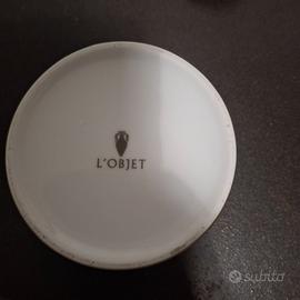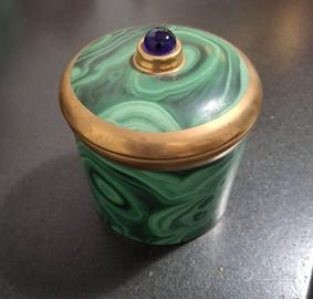 Candela di paraffina profumata allo champagne rosé di L'Objet, che fa parte della collezione Malachite del designer Elad Yifrach. Il contenitore verde marmorizzato con coperchio nel quale è racchiusa, decorato da un bordo dorato a mano 24 carati, rappresenta un lussuoso mix di porcellana di Limoges e cabochon semi-prezioso.