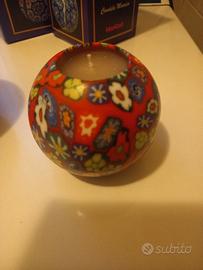 Candela lavorata a nano. Accesa illumina e fa risplendere tutta la superficie come fosse una vetrata a colori, attraversata dalla luce.