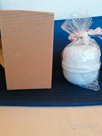 Candela natalizia a forma di gomitolo nella sua confezione regalo #Idearegalonatale#natale#decorazioninatalizie