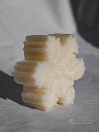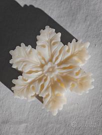 Candela in cera d' oliva realizzata a mano, a forma di fiocco di neve.