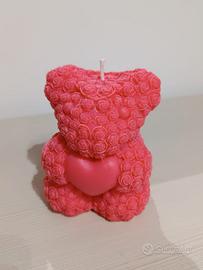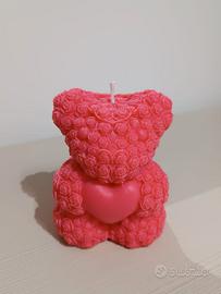 Candela decorativa a forma di orsetto ricoperta di rose.