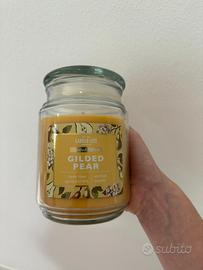 -Gilded Pear aroma con un mix di pere Anjou, mele Macintosh, foglie di agrifoglio, agrumi, ambra e legni vellutati.