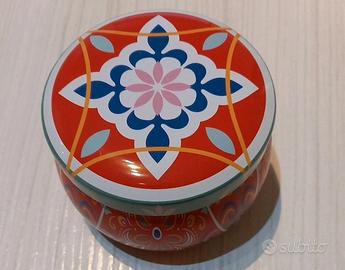 Candela profumata, ovviamente nuovissima. Scatolina di metallo con coperchio. Profumo fresco e delicato. Molto carina come soprammobile. Una volta spenta, si può richiudere la scatola col suo coperchio, cosí che la candela non prenda polvere e non si rovini.