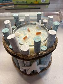 450 grammi di pura freschezza. Bellissima candela artigianale a tema mare, modello "Sere dâEstate". Perfetta sia come candela profumata che come raffinato oggetto d'arredo per la casa. PerchĂ© sceglierla: â Cera di Soia di alta qualitĂ : Naturale, vegana e a combustione pulita. â Zero sprechi: Una volta finita, la cera va via velocemente con acqua e sapone. Il contenitore resta perfetto e puĂČ essere riutilizzato in mille modi. â Design unico: Decorata con legnetti, stelle marine e elementi botanici. â Atmosfera garantita: Profumo fresco e rilassante. Un pezzo unico fatto a mano, perfetto come idea regalo originale! đ