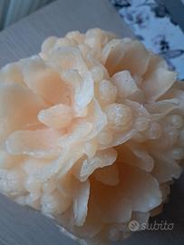 candela grande a forma di rosa in cera gialla. difetti in foto. andrebbe pulita ha un po di polvere. sped solo con poste