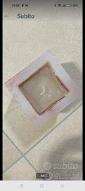 Candela on petali di fiori mai usata cm 11.5 x 7.5 x 7.5. colore rosso e bianco.