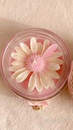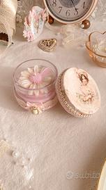 Non è solo 1 candela meravigliosamente profumata Con la fragranza ibisco, ma un oggetto dal fascino vintage, pensato per chi ama le atmosfere romantiche e senza tempo. impreziosita con pizzo, raso e passamaneria e decorazione vintage sul davanti diventa anche un oggetto di arredo. Da tenere in esposizione anche dopo che si è utilizzata totalmente la candela. 🩷 Caratteristiche •Candela artigianale in cera di soia con Stoppino in cotone ecologico •Contenitore decorato in stile vintage / shabby •Coperchio coordinato •Realizzata a mano con cura •Pezzo unico 📌 fragranza ibisco non testata sugli animali 🌿vegan 🩷 Ideale per •arredare una credenza, un comodino o un angolo romantico •creare atmosfera anche senza essere accesa •un regalo delicato per chi ama oggetti speciali Spedizione veloce e imballaggio accurato 🚚📦