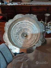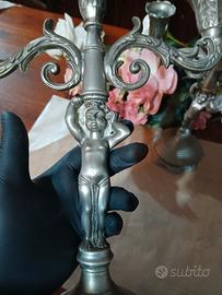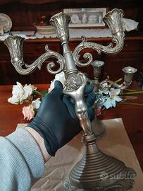 Vendo splendida coppia di candelabri a tre braccia, originali d’epoca, in ottone fuso con finitura argentata/nichelata.