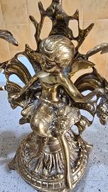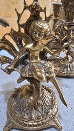 ✨ Rara Coppia Candelabri Antichi/Vintage in Ottone con Fata Ballerina Alata - 3 Fiamme ✨