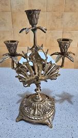 I candelabri sono in ottime condizioni vintage/antiche. Presentano la patina originale dell'ottone, che ne attesta l'autenticità e l'età, valorizzandone il fascino e il carattere (come visibile nelle fotografie). Sono integri in ogni loro parte, senza rotture o restauri significativi.